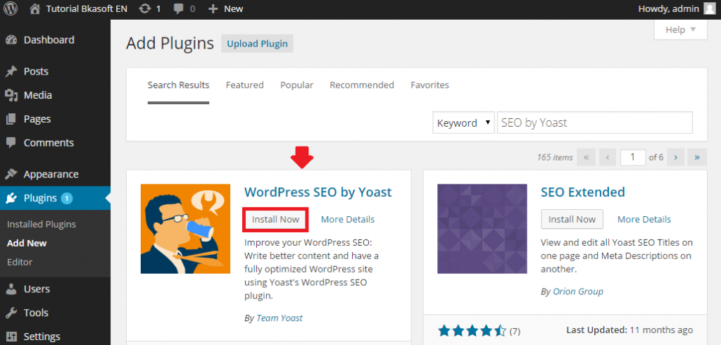 Dưới đây là các bước tìm và cài đặt WordPress SEO by Yoast: