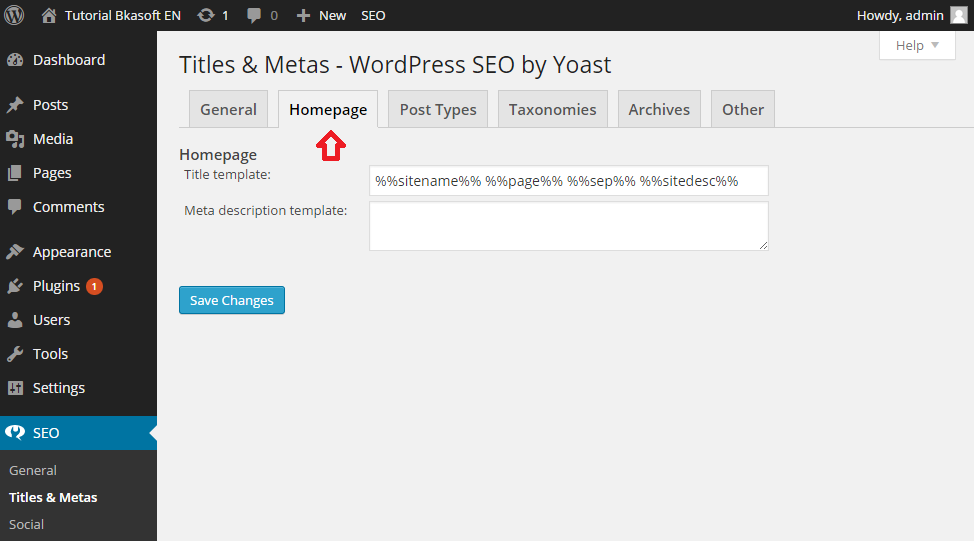 - Meta description template: Là phần mô tả cho trang chủ của blog. Bạn viết mô tả ngắn gọn nhưng phải diễn đạt được hết nội dung trên blog của bạn nhé! Sau đó Save changes lại.